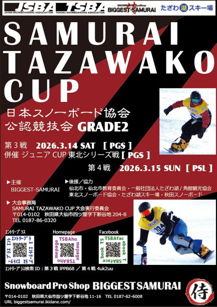 2026.3.14(土)第3戦 SAMURAI TAZAWAKO CUP(PGS)GRADE2/併催SAMURAIジュニアCUP(PGS)