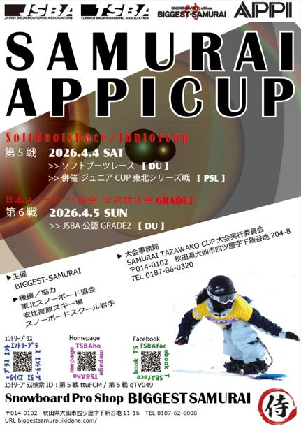 2026.4.4(土)SAMURAI APPI フリースタイルCUP(DU)/併催SAMURAIジュニアCUP(PSL)